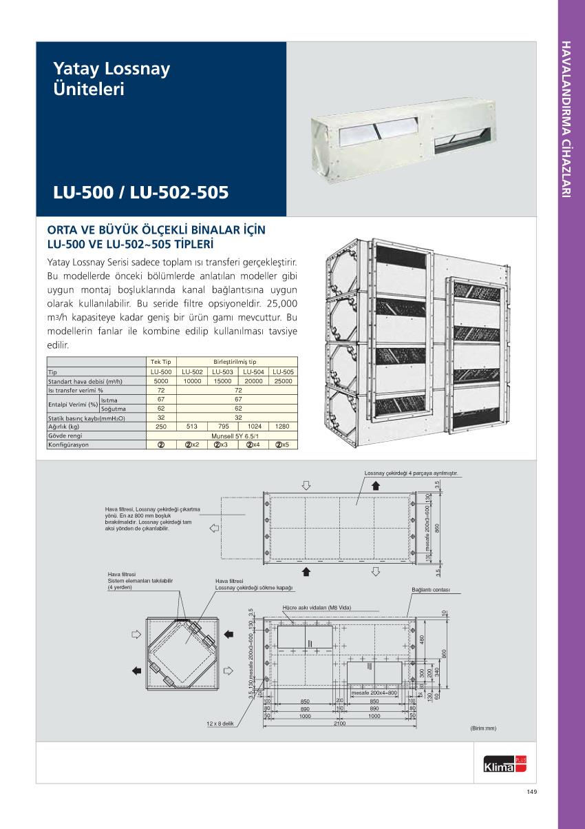 LU-500 Yatay Isı Geri Kazanım Ünitesi Teknik Özellik